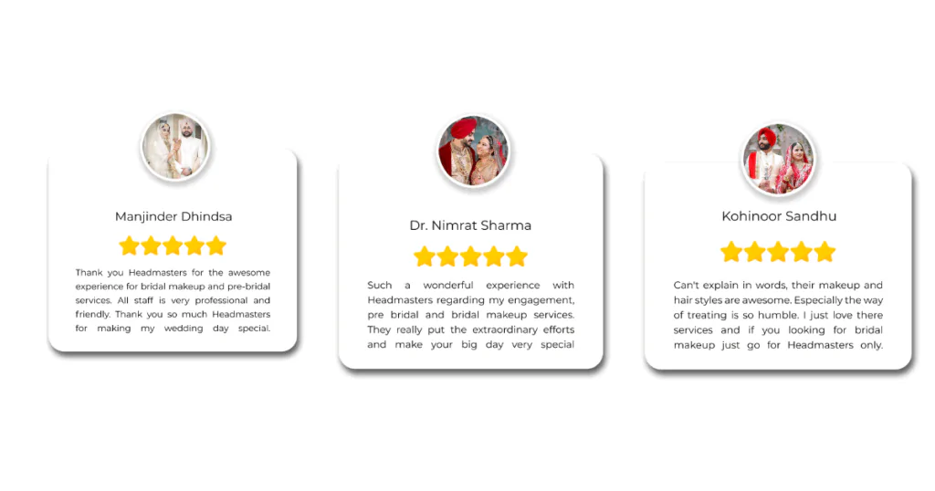 4. Cleanliness and Hygiene- Each product, brush, and sponge is thoroughly cleaned. Headmasters uphold the strictest hygienic standards, particularly when it comes to skin and bridal services. Check out our latest makeup looks on Instagram @headmastersmohali